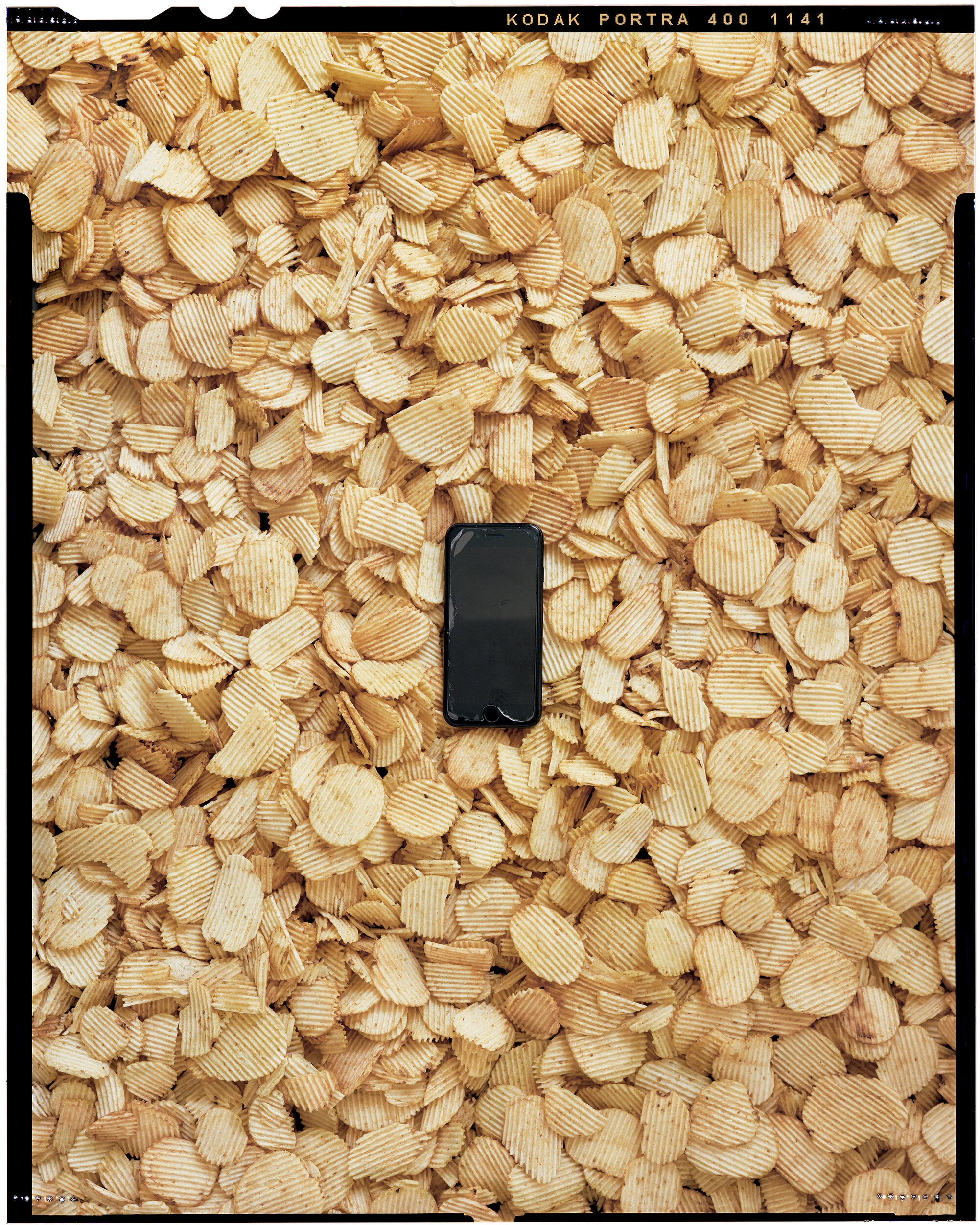 The images describe a growing apathy manifesting in our “this is us, lol” social media exchanges and memes shares, while the overtly contrived layouts intend to mimic the way we curate toward an online audience.